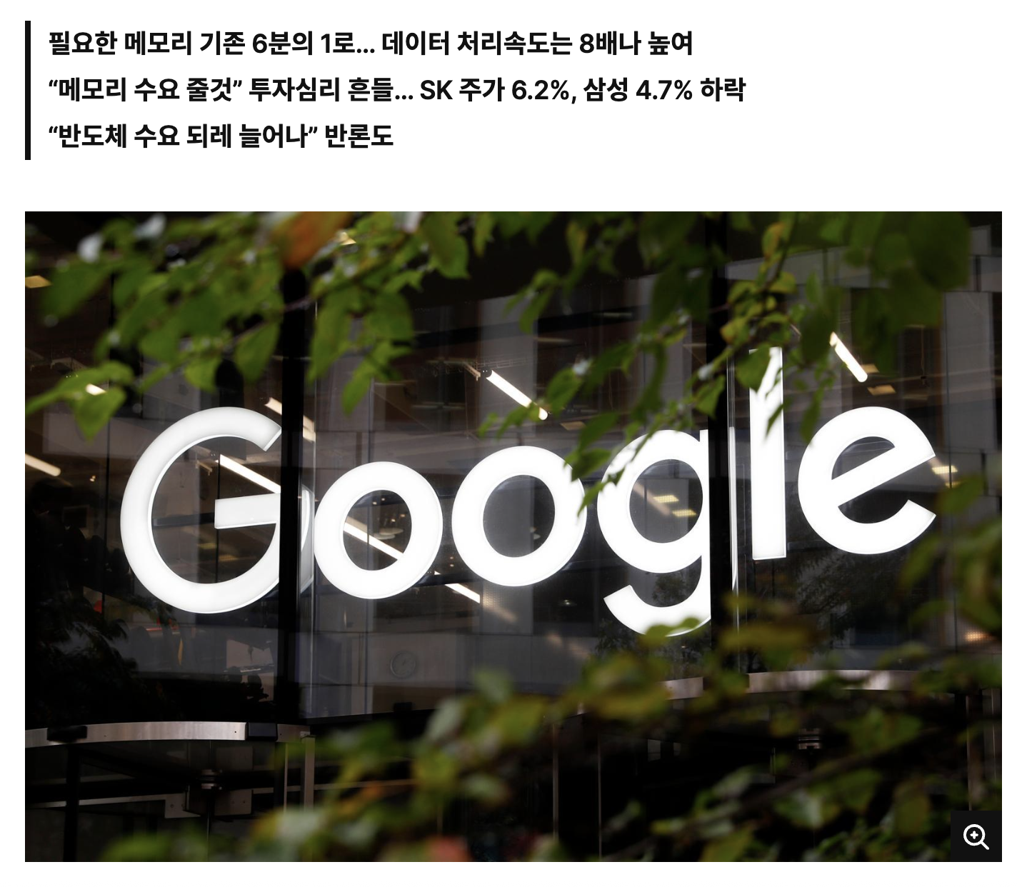 구글이 대규모 언어모델(LLM) 데이터를 기존보다 적은 자원으로 빠르게 처리할 수 있는 신개념 알고리즘 기술을 공개하자, 세계 주요 메모리 반도체 기업 주가가 줄줄이 하락했다. 메모리 반도체 수요가 줄어들 수 있다는 우려가 투자 심리에 영향을 미친 것으로 보인다.