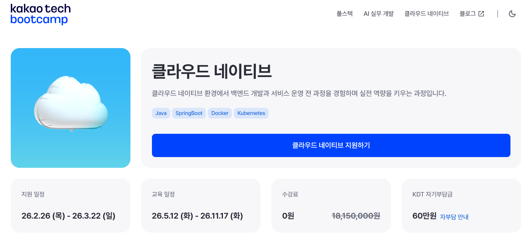 카카오테크 부트캠프 클라우드 네이티브 (2026.03.22 까지 지원)
