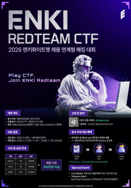 ENKI REDTEAM CTF 2026 엔키화이트햇 채용 연계형 해킹 대회